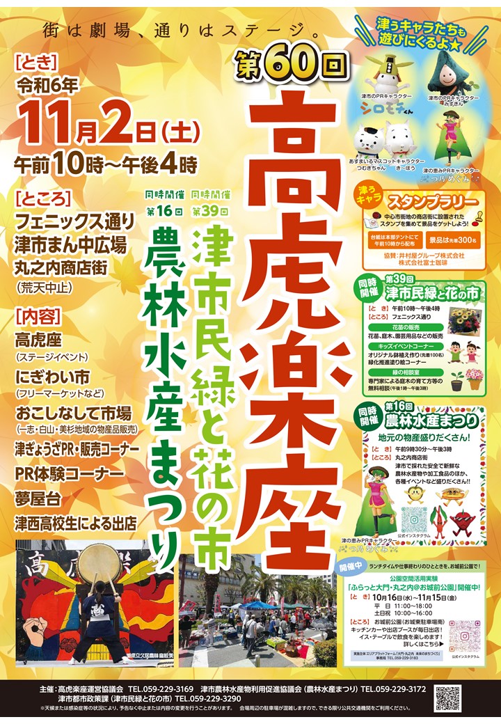 節目の60回目を迎える高虎楽座では、メイン会場であるフェニックス通り会場に加え、丸之内商店街では秋恒例の農林水 […]