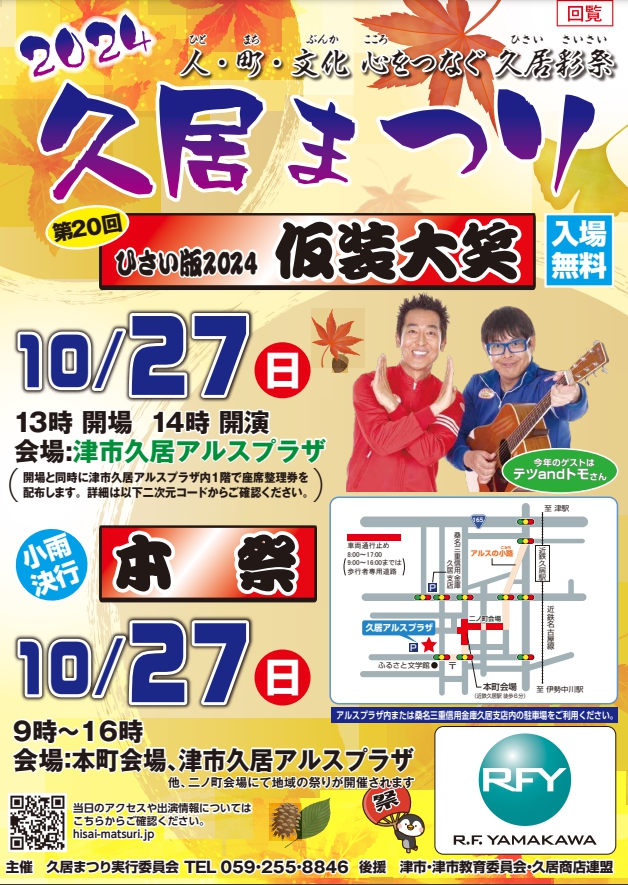 久居アルスプラザ会場 第20回ひさい版2024仮装大笑!今年のゲストは「テツ&トモ」さんです。 まちかど博物館 […]
