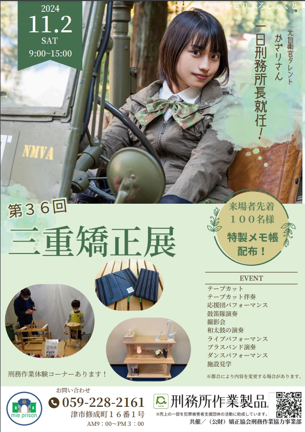 秋の風物詩である三重矯正展が今年も開催されます! 元自衛官の『かざりさん』が一日刑務所長に就任! その他、応援 […]