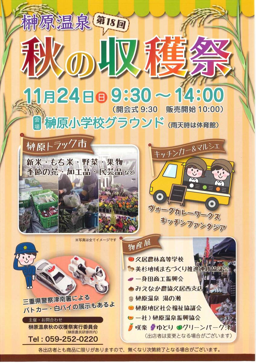榊原温泉第18回「秋の収穫祭」のお知らせ 皆さまお待ちかねの榊原温泉秋の収穫祭が今年も開催されます。 トラック […]