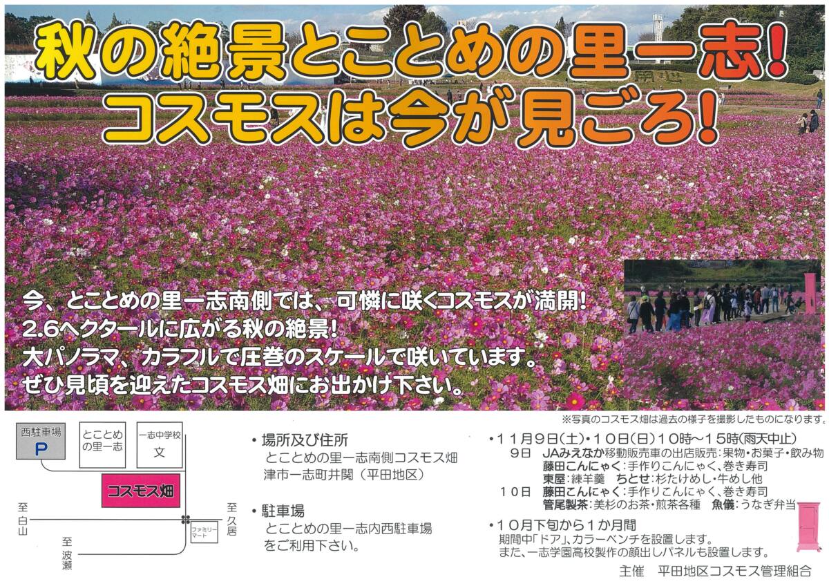 とことめの里一志 津市一志町井関1792 三重県 日本三重県のコスモスの名所のひとつでも販売「とことめの里一志」にて、11月9日(土)と10日(日)地域の物産販売を […]