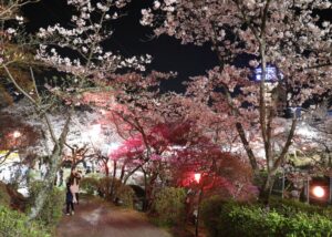 春まつり期間中は、公園内にぼんぼりや提灯を設置し、ライトアップにより夜桜が楽しめます。