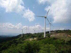 近年では、青山高原の笠取山(標高842m)から青山峠に至る南北約15kmにわたる山頂付近に、数多くの白い大きな風力発電の風車が立ち並び、さらに見応えのある景観となっています。