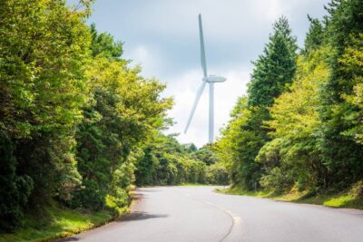 風の心地よさ、素敵な風景を楽しめるスポットとして、多くの観光客が訪れます。道中の青山高原公園線は、10kmほどのワインディングが続く道で、ドライブに最適です。