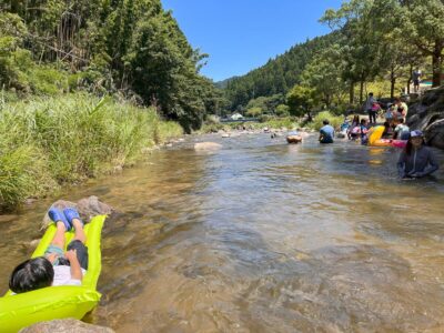 川はキレイで冷たくて、暑い夏にはぴったりなレジャーです。