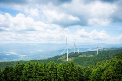 風の心地よさ、素敵な風景を楽しめるスポットとして、多くの観光客が訪れます。道中の青山高原公園線は、10kmほどのワインディングが続く道で、ドライブに最適です。