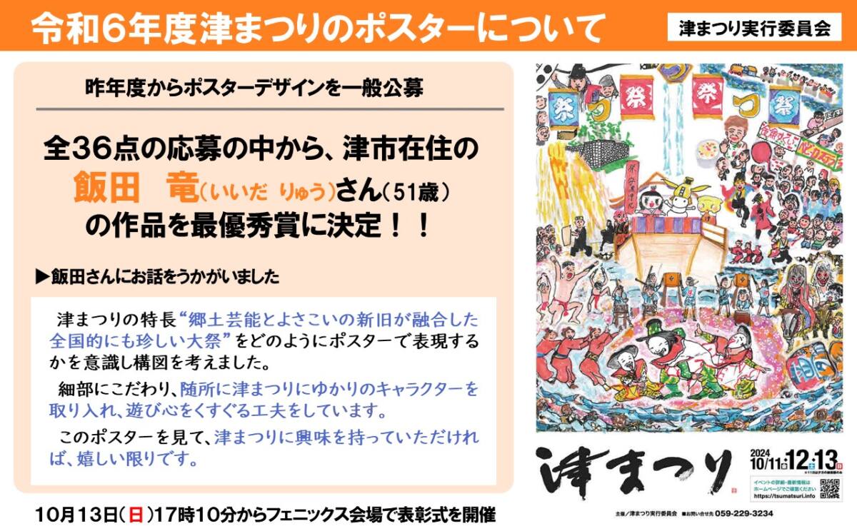 津まつりポスターは、昨年度から一般公募で作成しています。今年の作者の思いなどもご覧いただければと思います。