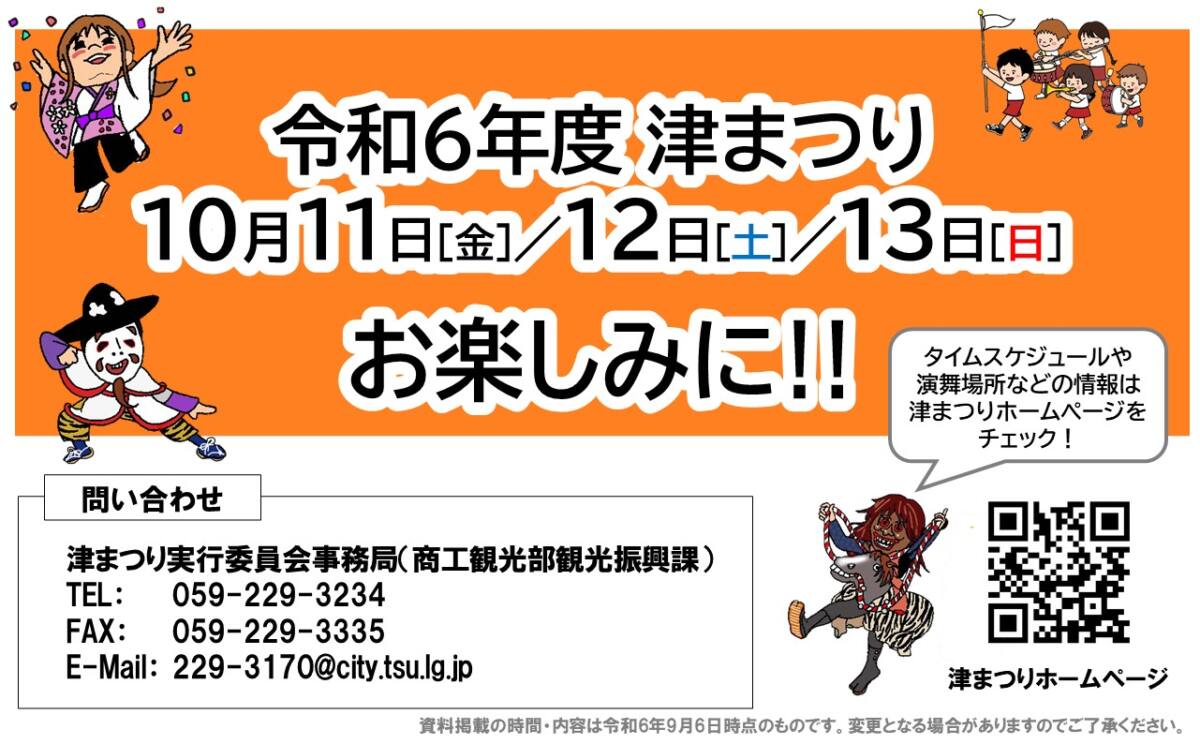 ※ 津まつり実行委員会は、郷土芸能団体、津市自治会連合会、津市内の商工業・サービス業団体、津まつりの趣旨に賛同する団体で構成。