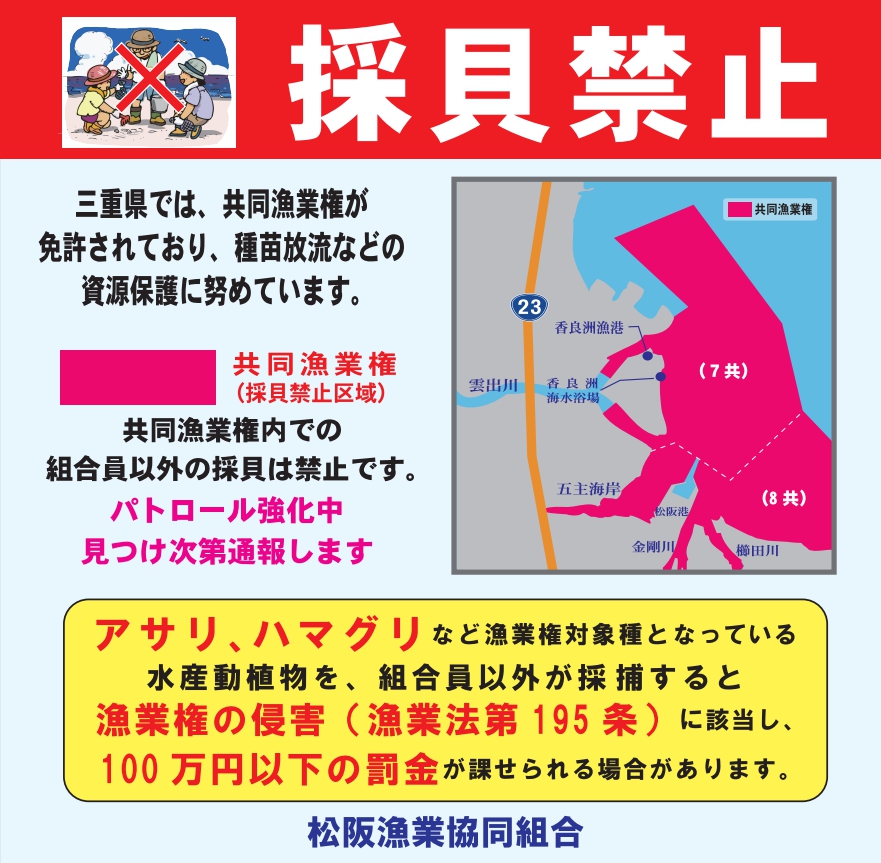 香良洲海岸の「潮干狩り全面禁止について」のお知らせ