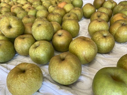 主に収穫は、8月から9月にかけて行われ、梨畑近辺及び販売所で購入していただけます。