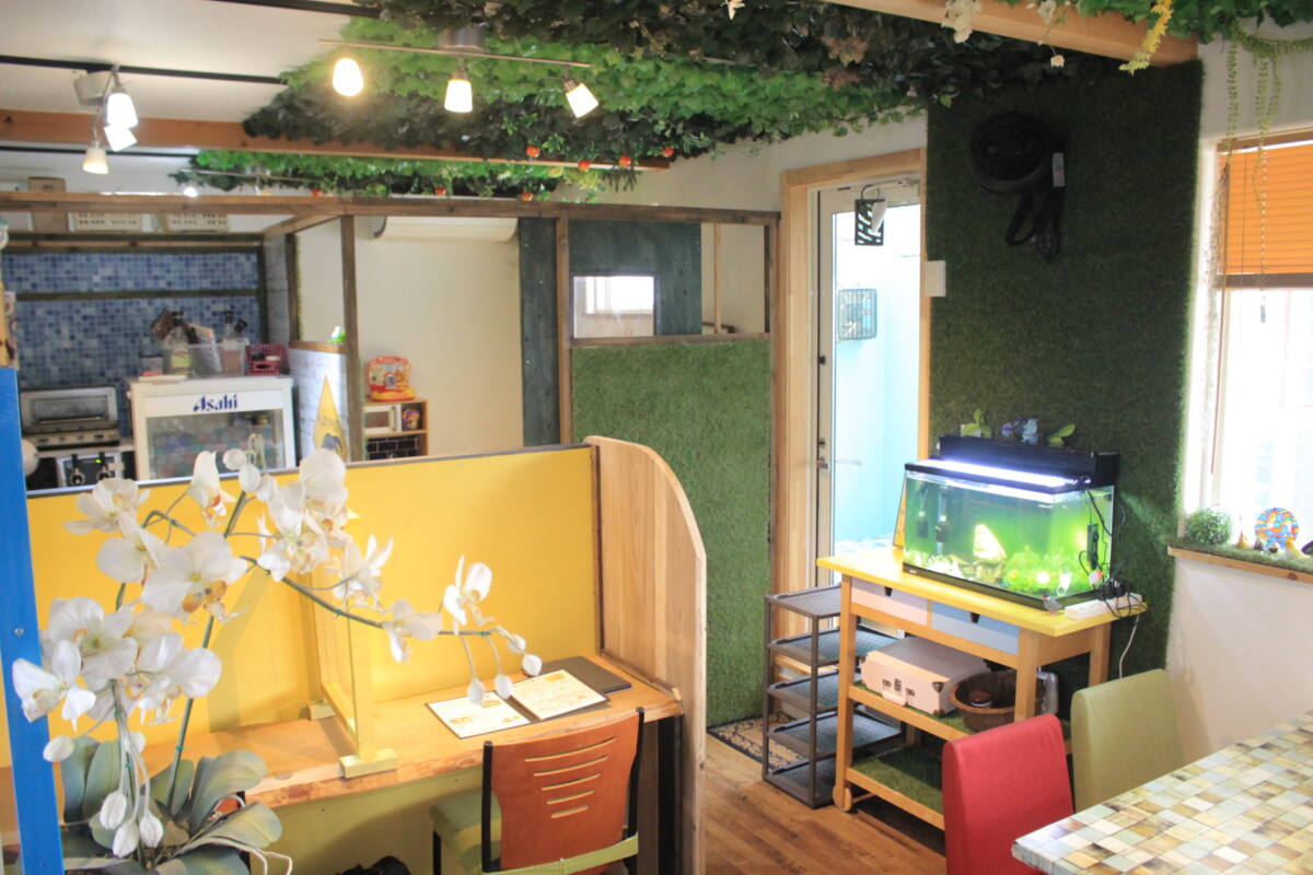 昼はオムライスなどのセットメニューが充実している素敵なカフェスペース
