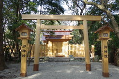 〇伊勢の皇大神宮(内宮)に祀られている天照大神の御妹神である稚日女命(わかひるめのみこと)を祭神としています。古くから「お伊勢詣りをしてお加良須に 詣らぬは片参宮」といわれ参拝者が絶えなかったといわれています。伊勢湾岸に面した松林の中に拝殿や神明造りの本殿が佇み、訪れるものを日本ならではの情緒でやさしく包みこんでくれます。