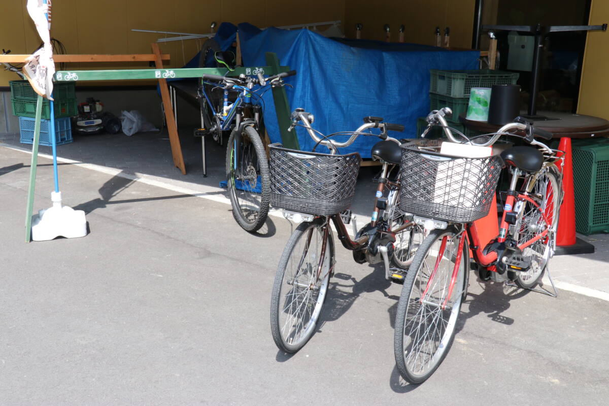 マウンテンバイク、電動自転車、それぞれ1台500円でレンタサイクルができます♪