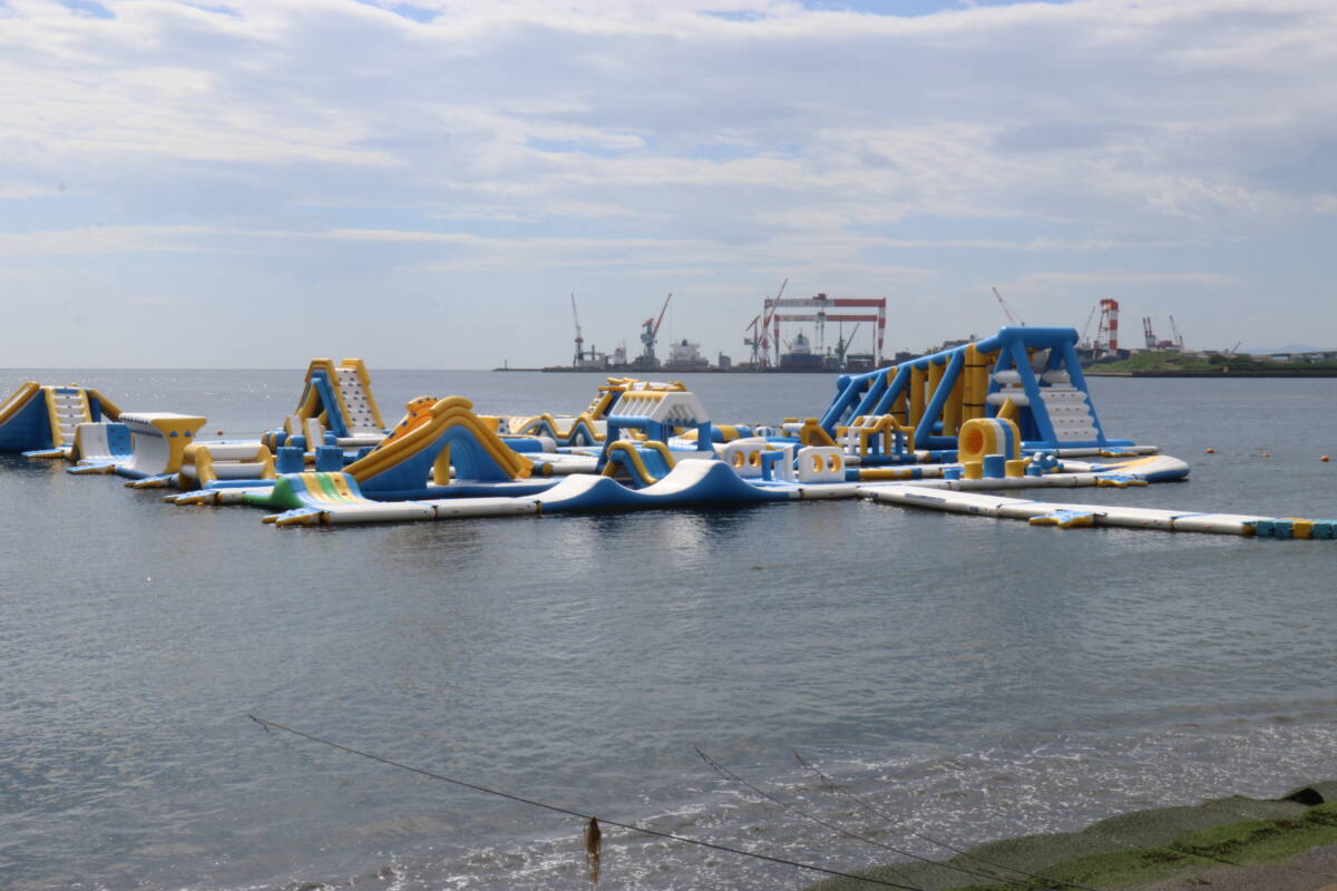 三重県津市御殿場海岸に巨大海上アスレチックが初登場!