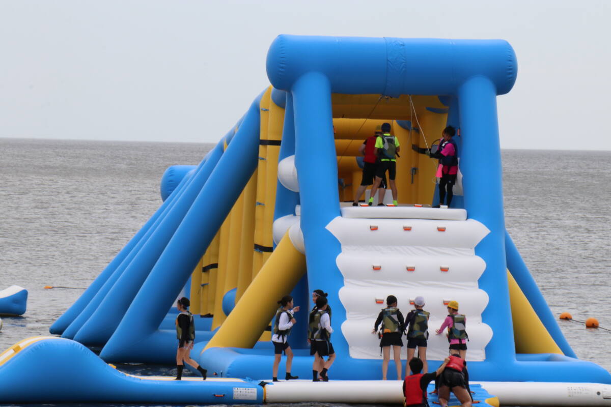 三重県津市御殿場海岸に巨大海上アスレチックが初登場!