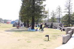 面積は38,300平米で、開放性のある起伏に富んだ緑の大地と、それらと連続する水の流れが魅力的な広場です。木造遊具や広大な芝生の広場があり、ファミリーに楽しい公園です。